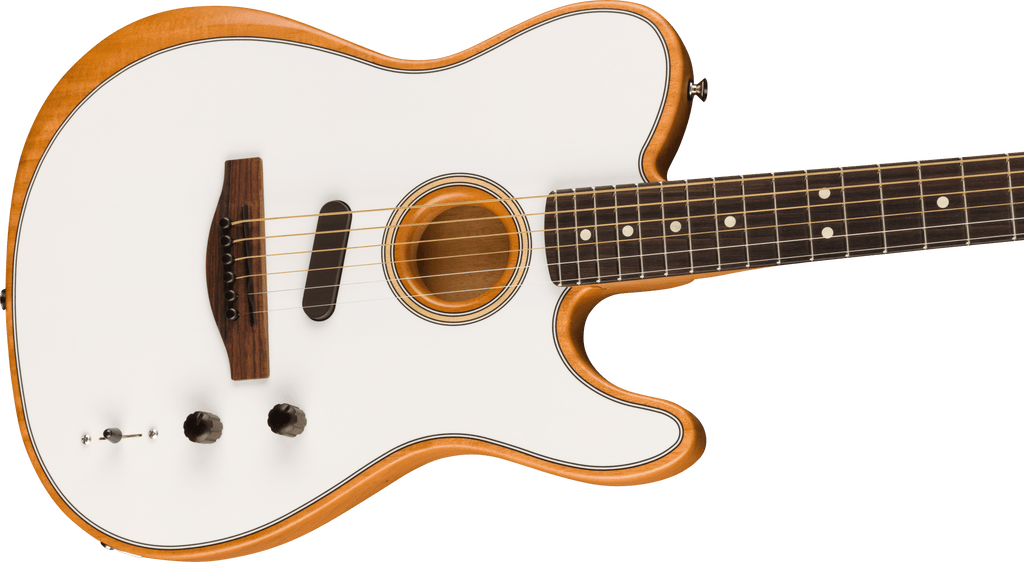 The evolution of Fender’s trailblazing Acoustasonic platform continues with the introduction of the Acoustasonic Player Telecaster. This acoustic-electric guitar offers its own set of six voices that showcases its unique personality. A streamlined 3-way switch allows for shape-shifting between acoustic and electric tones. With the Acoustasonic Player Telecaster, this platform has been refined to offer a versatile, more accessible tool for the modern musician.