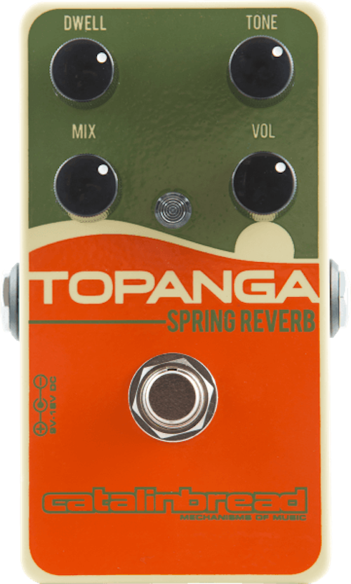 The outboard Fender 6G15 spring reverb unit is the sound of Surf guitar, Spaghetti Western and many other great guitar sounds from the sixties. Part of its magic, and how it differs from the internal spring reverb found in most Fender-style amps, is that it is run *in front* of the amp, causing the reverb signal to distort and sound more intense. Because there were additional knobs on the outboard units, you also have more control over the reverb qualities. The Dwell knob controlled how hard the springs were getting hit by the guitar signal. The Tone knob allowed the treble to be dialed back to just the right degree of brightness. It was also essentially a tube preamp, so it would color the sound going into the amp. All this added up to a very distinctive reverb sound with a lot of attitude and complex non-linearities that are hard to replicate. But we here at Catalinbread did just that! Besides giving you the classic three knob control compliment of the original, we’ve also added a great discrete preamp that you can control via the Volume knob for a healthy amount of great clean boost when you want it