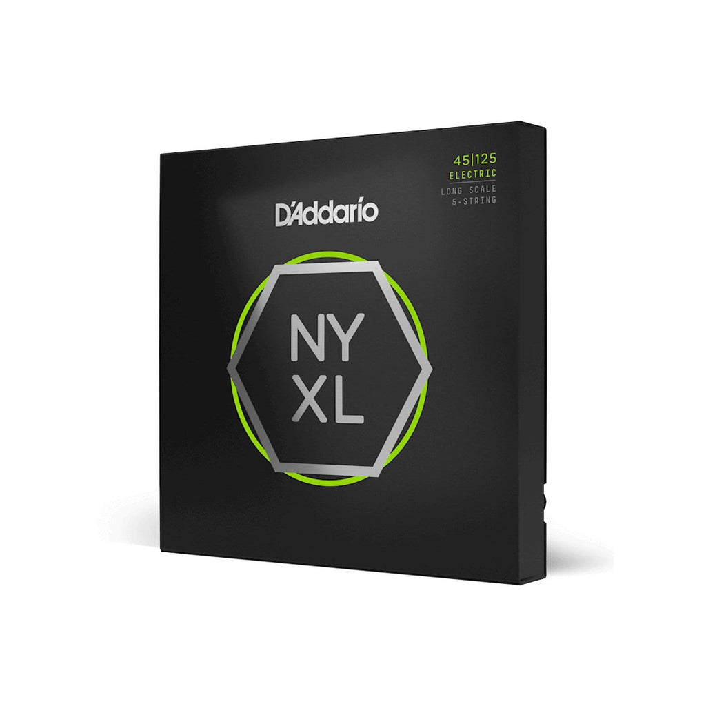 NYXL45125 is a hybrid gauge string set for 5 String, long scale basses. The high carbon steel used in NYXL strings offers higher break strength, enhanced tuning stability, and accentuated mid-range