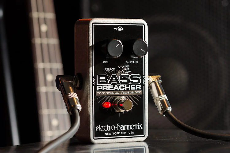 Bass guitars possess a huge dynamic range and produce powerful low frequencies. Designed for and by bassists, The EHX Bass Preacher compressor/sustainer features fully adjustable controls that can subtly transform the dynamic qualities of a bass guitar or take them to the extreme. From transparently leveling out notes so they sit in a track to creating an intensely squashed sound, the Bass Preacher helps spread the gospel of great bass tone!