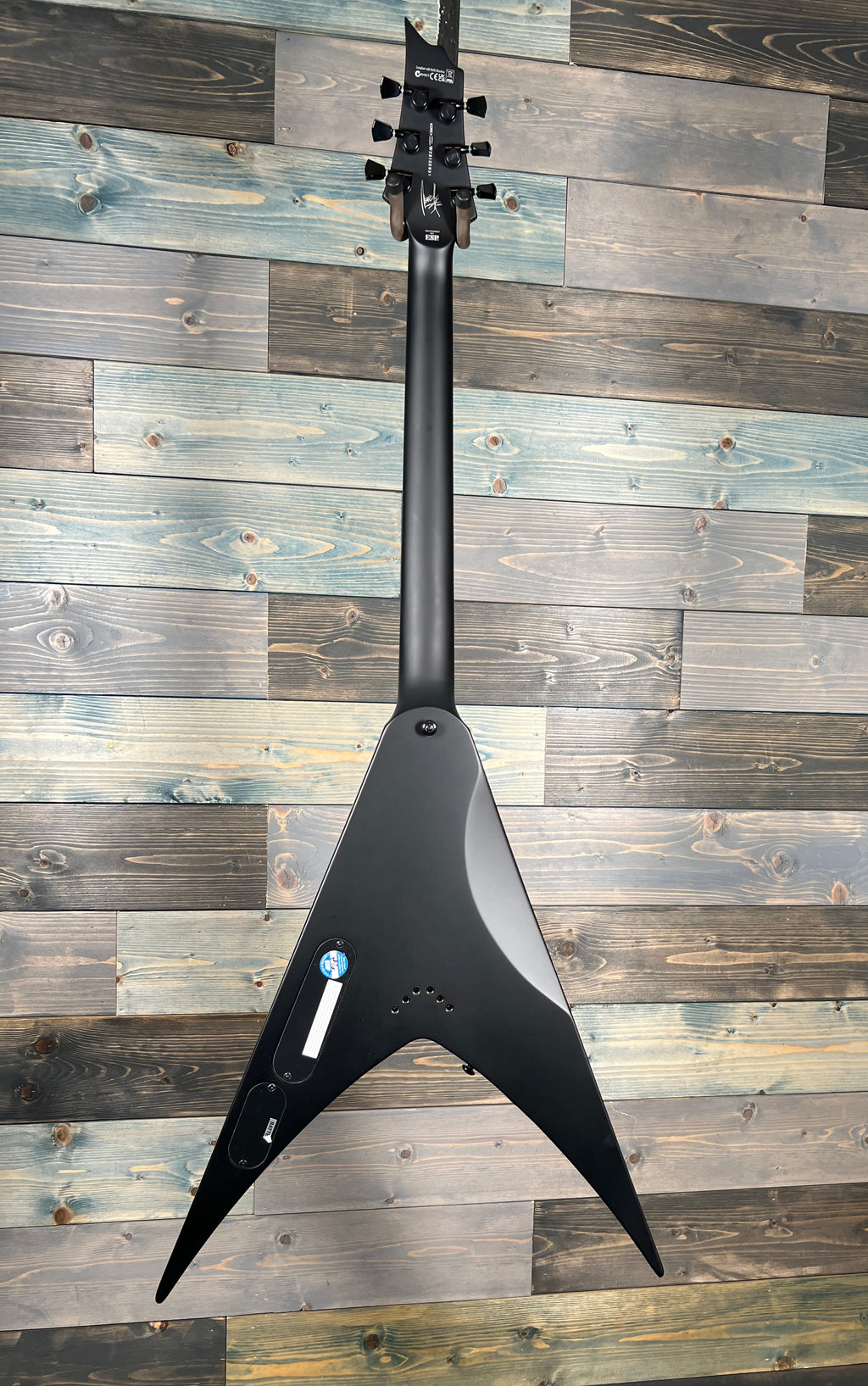 For the past 30+ years, Nergal has been the lead guitarist, vocalist, and mastermind behind Polish metal warriors Behemoth. While continuing to evolve musically, the unique darkness of Behemoth’s songs and sounds have been a constant presence in their influential recordings and extraordinary live shows. For the first time ever offered in an LTD version, the Nergal Signature Series HEX-6 offers a purely diabolical symmetrical V-shaped body, built with neck-thru-body construction at 25.5” scale. The HEX-6 features a mahogany body and three-piece maple neck, all with an appropriately evil Black Satin finish. Its Macassar ebony fingerboard has 24 extra-jumbo frets, and is devoid of markers with the exception of a special 12th fret inlay that draws artistically from the band’s Opvs Contra Natvram album. Black chrome hardware components on the HEX-6 include a TonePros locking TOM bridge with string-thru-body, LTD locking tuners, and a set of direct-mount Fishman Fluence Modern Humbucker active pickups, with the alnico version in the neck position and ceramic version in the bridge. These innovative pickups offer multiple voices that are selectable with a push-pull volume control. Includes ESP deluxe hardshell case.