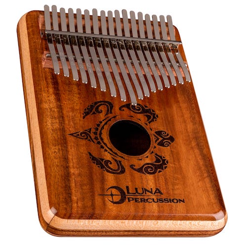 There is nothing more meaningful than playing an instrument that embodies a rich history, made from excellent sounding tonal woods, a creative design, and can bring you peace of mind. Kalimbas evolved from the mbira family, a family of percussive instruments originating thousands of years ago in Zimbabwe. Today, the Kalimba is not only used to accompany modern instruments on stage and appear on musical albums but also as a form of relaxation and a method to escape the stresses of everyday life. The Luna Honu 17 Key Kalimba is what happens when modern design meets musical history! Built with an all-solid Koa wood body and decorated with two stripes of flamed maple binding, Honu is the Hawaiian word for turtle. Laser-etched around the sound hole of the Kalimba, you can see a sea turtle swimming below the steel tines. This is the perfect instrument and design to take with you on all your tropical adventures! Keep your Kalimba in-tune to the Key of C with the tuning hammer and instruction booklet to use as a reference. Hard shell case included with a polishing cloth and an extra soft carrying bag. Whether youre relaxing on a beach, taking a break at work, or jamming with the band around a bon fire, make sure you have your little hand piano by your side. Join the Luna Tribe!