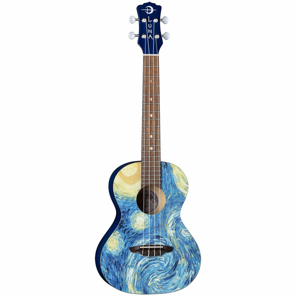 "This morning I saw the countryside from my window a long time before sunrise, with nothing but the morning star, which looked very big." These words were written by van Gogh, to brother Theo, describing his inspiration for one of his paintings. Nothing inspires creativity more than an eccentric painting with a significant historical significance. The Uke Starry Night Tenor encourages uke players to truly "Play the Art of the Music" - Creativity inspires all! Beautifully handcrafted from mahogany and a walnut fretboard, this uke boasts quality construction to match its sound and stunning design. Whether youre looking to mic this ukulele up on the big stage or join the writers round, a Luna uke is perfect for all skill levels. This tenor uke boasts a deep but loud, resonate sound both by virtue of its tenor body with maple top and mahogany body. Gig bag included.