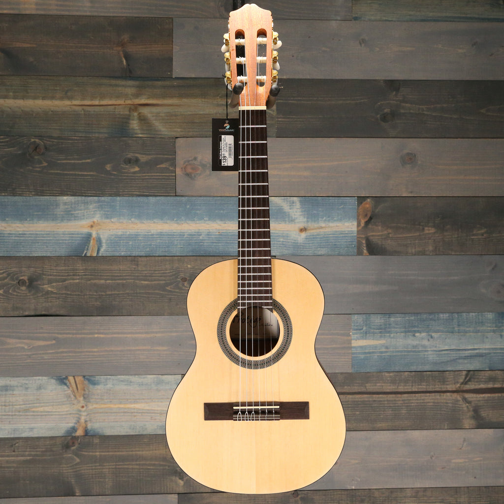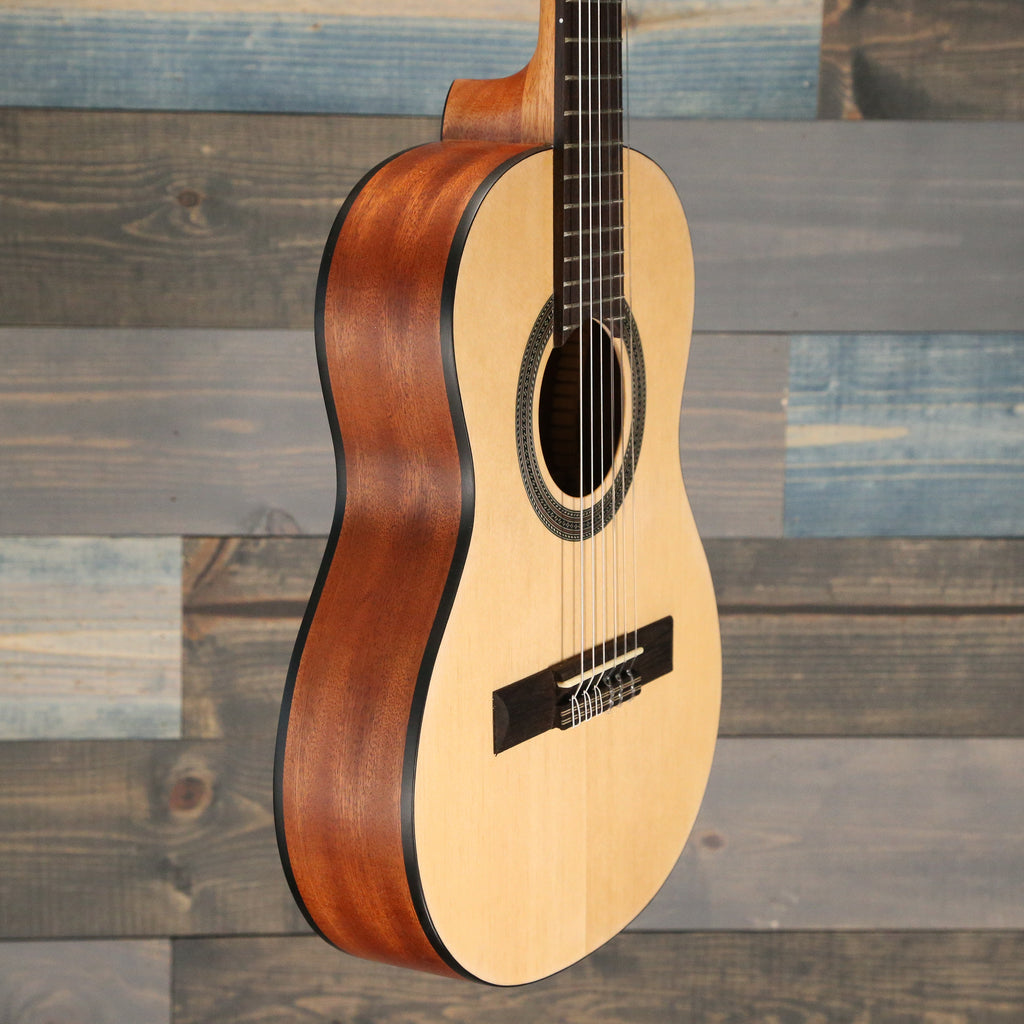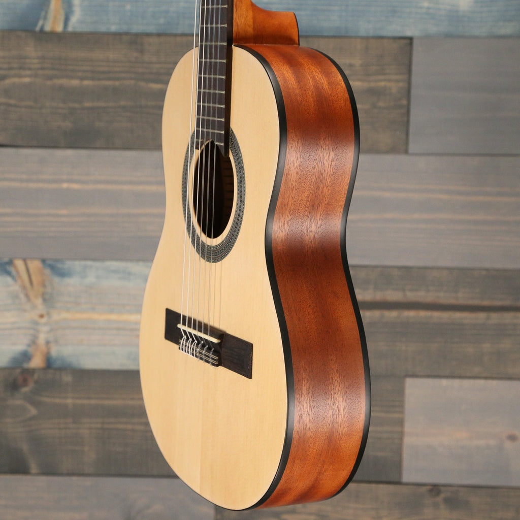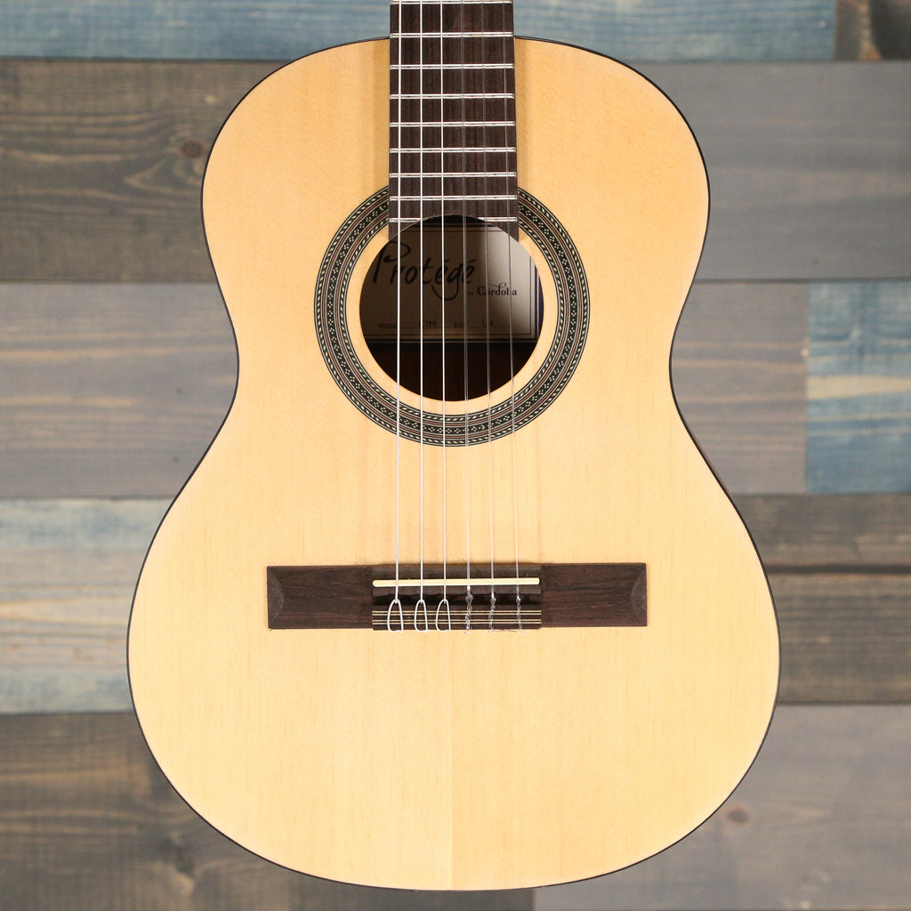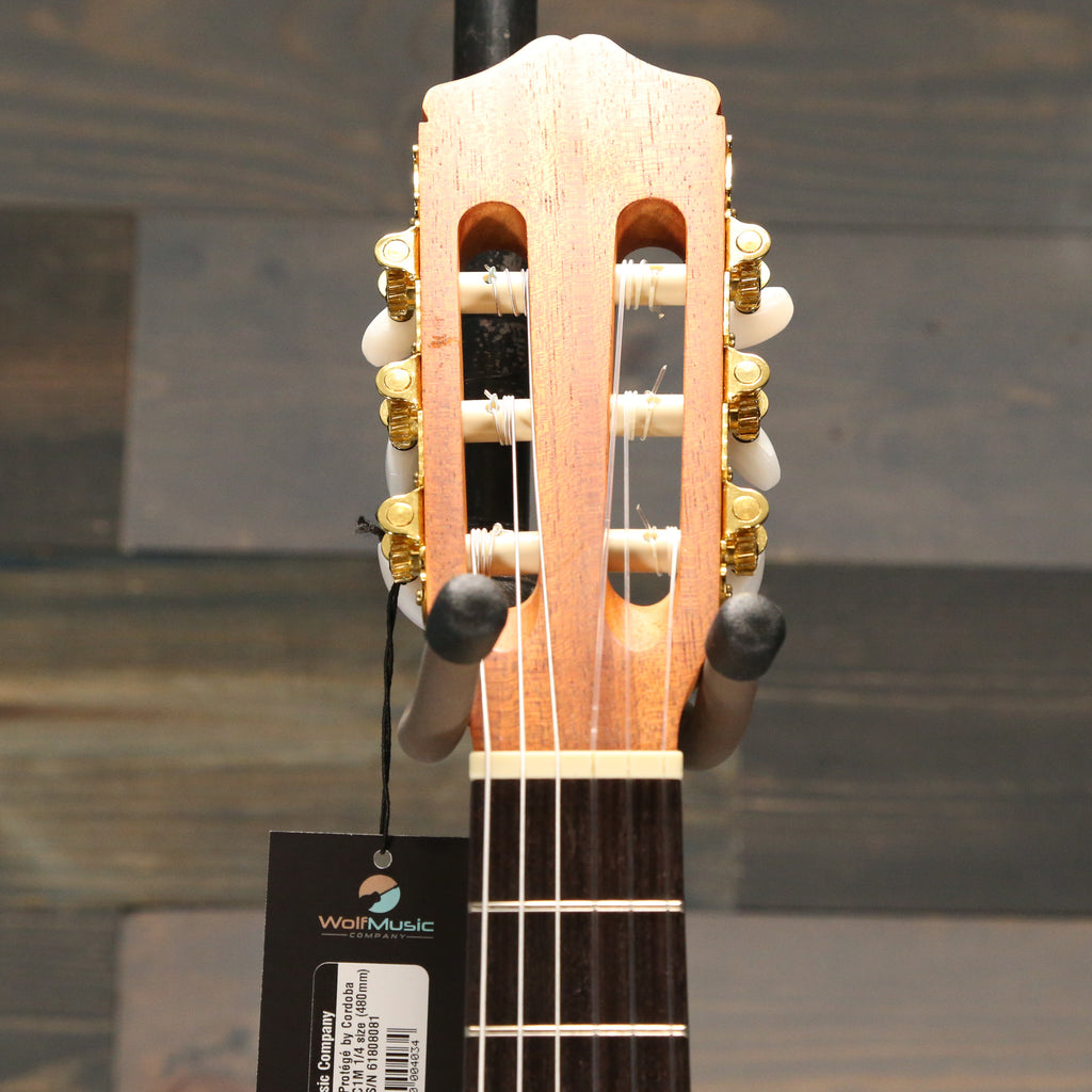 The Protégé by Córdoba C1M 1/4 is the perfect nylon string guitar for students of all levels, and is perfectly at home in the classroom or at home. Comfortable and easy to play, it's a great first guitar at an affordable price. Every Protégé C1M is built with a spruce top, mahogany back and sides, a comfortable, slim neck profile, traditional mosaic rosette, and a matte polyurethane finish. Like all Córdoba instruments, C1M models feature premium Savarez strings and an adjustable truss rod for lifetime neck stability.