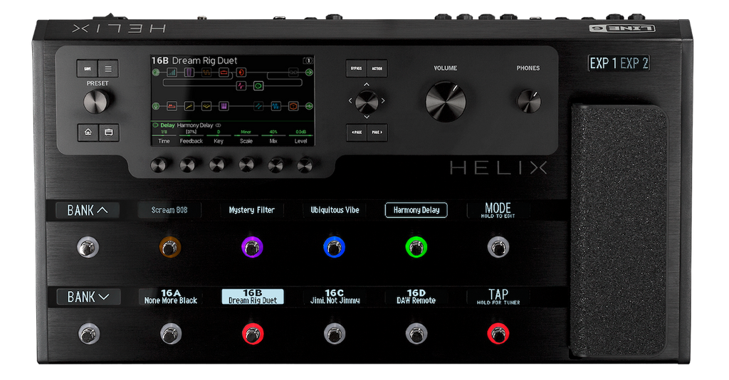 Helix offers incredible power, flexibility, and control. HX Modeling uses dual-DSP processing to deliver the nuanced character that exists in the original classics, giving you natural bloom, compression, modulation, and honk on some models, as well as intense gain and breakup in others. Not only do HX Models sound and feel real, Helix is a comprehensive master controller for your guitar system, with extensive I/O that provides unprecedented flexibility for studio and stage. Touch-sensitive footswitches, customizable scribble strips, and a large color LCD make the user experience faster and more efficient.